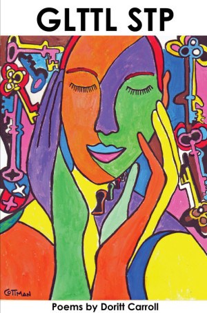 And now I have her little book Glttl Stp (Glottal Stop). It makes me feel like I could be a poet too. After all, I know what a glottal stop is. After all, I practice lunch-time yoga on the mat next door to Doritt. The book cover has a bright picture of a puzzle-piece woman with a locked throat. I know all about that too.